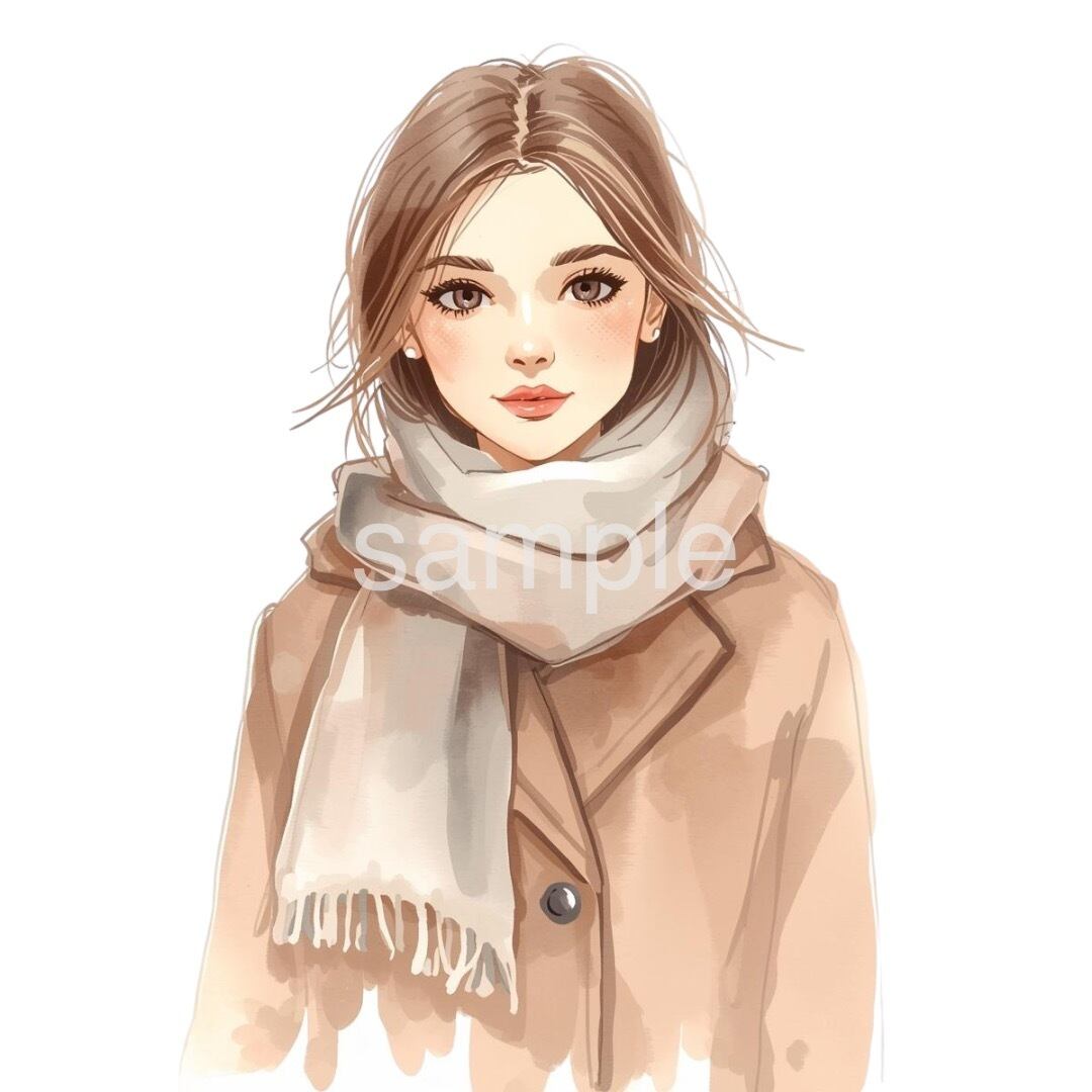 ふんわり優しい 水彩画風 と、心がほっと落ち着く淡いアンティークカラーで仕上げた、『冬のファッションアイテム』クリップアートセットです。