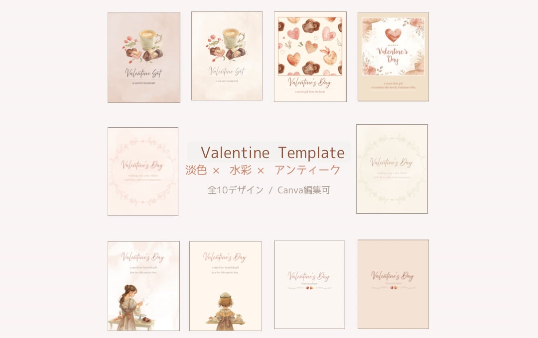 【Valentine Canva Template Set】淡色×水彩 バレンタインCanvaテンプレート 10セット
